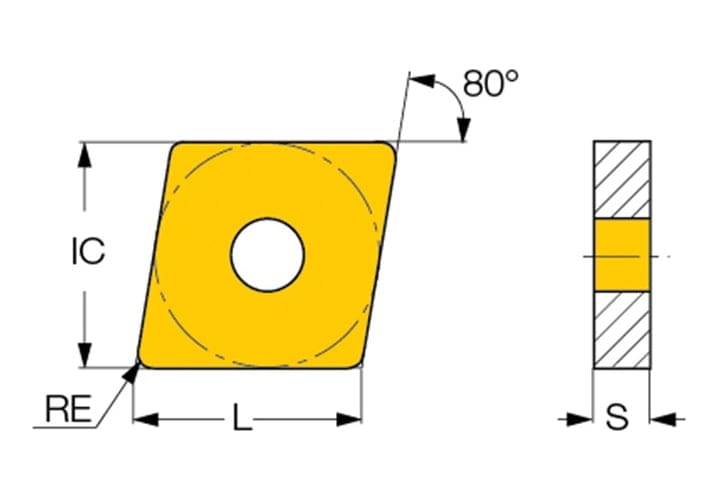 Plaquita Rómbica de 80º, Doble Cara, para Materiales de Virutas Cortas como Fundición.
